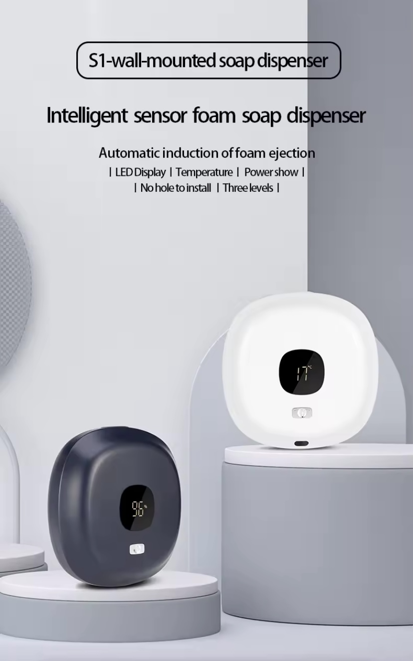 3. **شاشة رقمية**: تتميز الواجهة الأمامية بشاشة رقمية تعرض مستوى الصابون المتبقي، مما يساعد المستخدمين على تتبع الاستخدام.